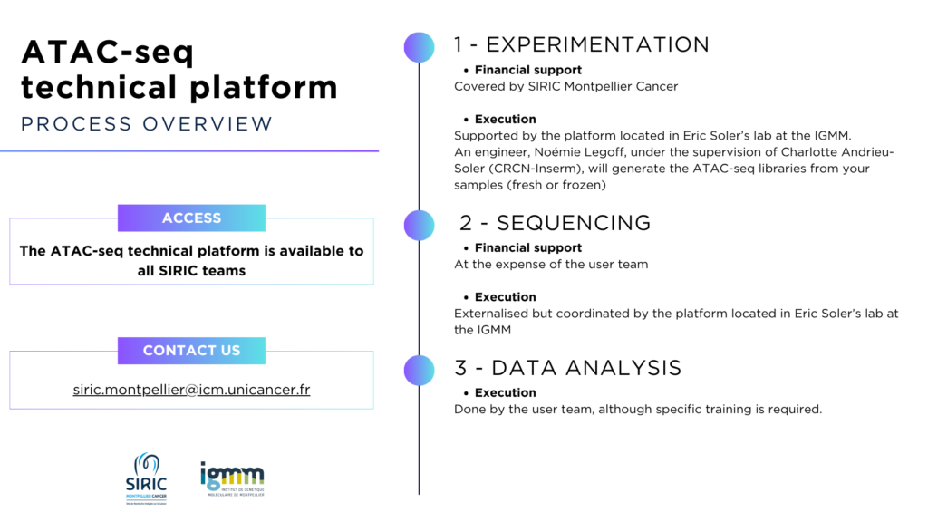 En janvier 2025, le SIRIC Montpellier Cancer inaugure un nouveau plateau expérimental dédié à l’analyse de l’épigénome, basé sur la technologie ATAC-seq, et accessible à toutes les équipes de recherche du SIRIC Montpellier Cancer.