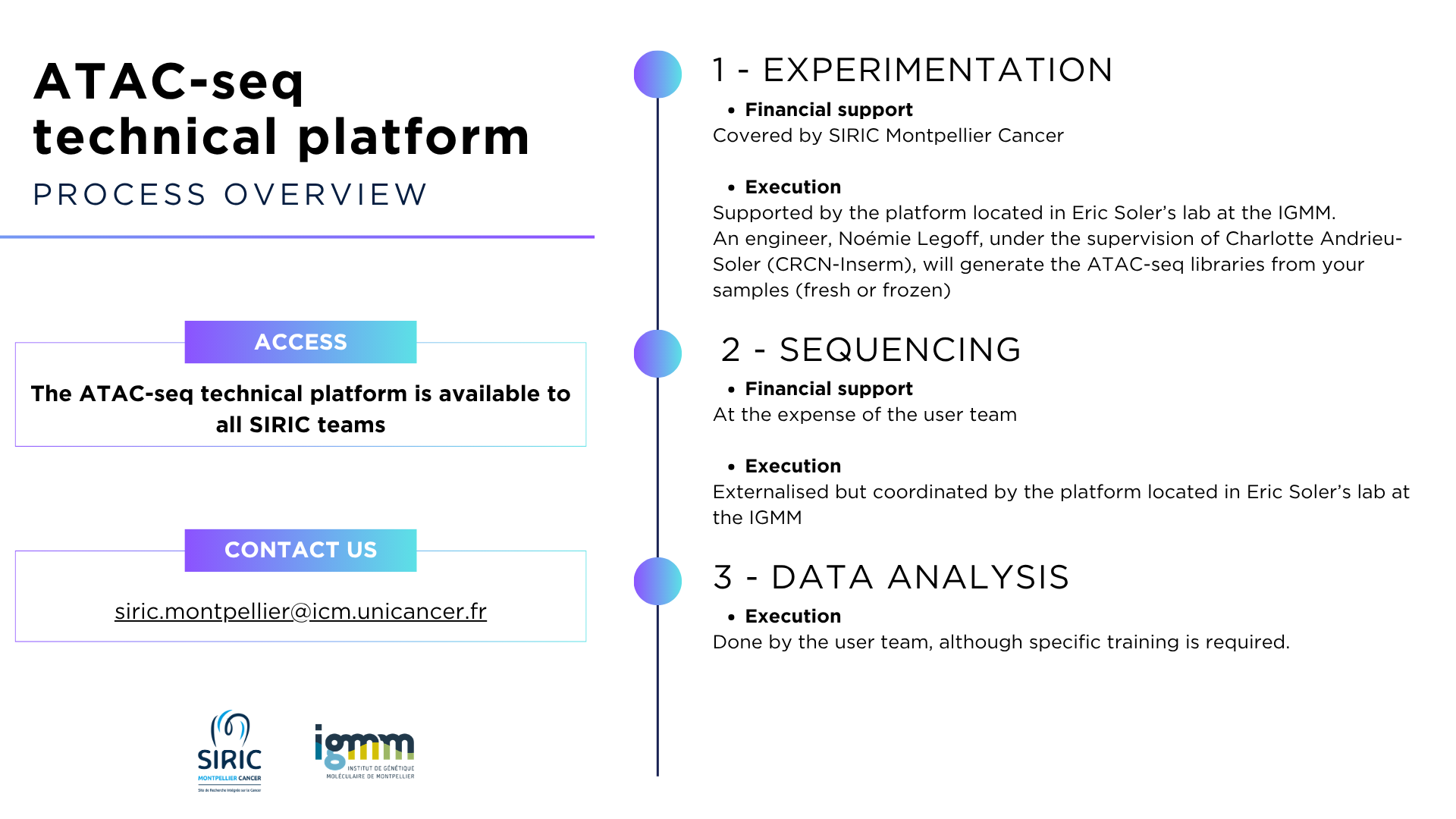 La troisième étape doit être réalisée par l’équipe de recherche, qui aura au préalable suivi une formation à la technologie ATAC-seq.