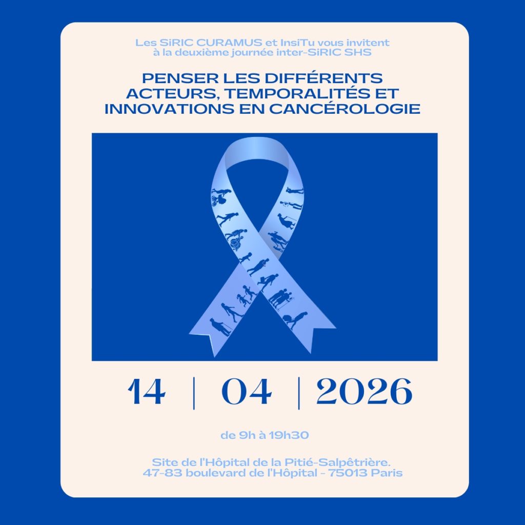 Les SiRIC CURAMUS et InSiTu organisent la deuxième journée d’études inter-SiRIC consacrée aux recherches en sciences humaines et sociales (SHS). Réunissant des chercheurs de diverses disciplines (philosophie, sociologie, psycho-oncologie, éthique médicale, santé publique, épidémiologie ou encore sciences de l’information et de la communication), cette journée vise à dresser un bilan des travaux menés et en cours dans les différents SiRIC, mettre en lumière l’apport des SHS à la recherche sur les cancers, favoriser le dialogue inter-SiRIC et penser de futures collaborations.